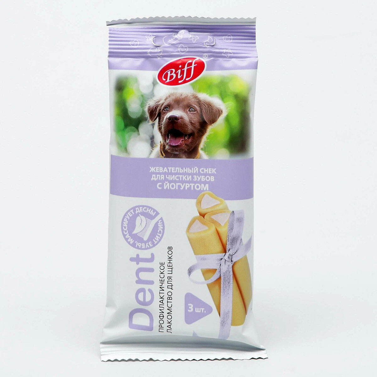 Жевательный снек с йогуртом - это специализированное лакомство для щенков мелких и средних пород, разработанное с учетом особенностей растущего организма. Продукт помогает мягко очищать зубы от налёта, способствует массажу десен и поддерживает формирование правильного прикуса в период активного роста.
